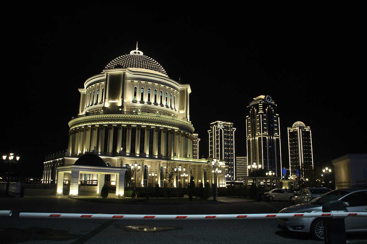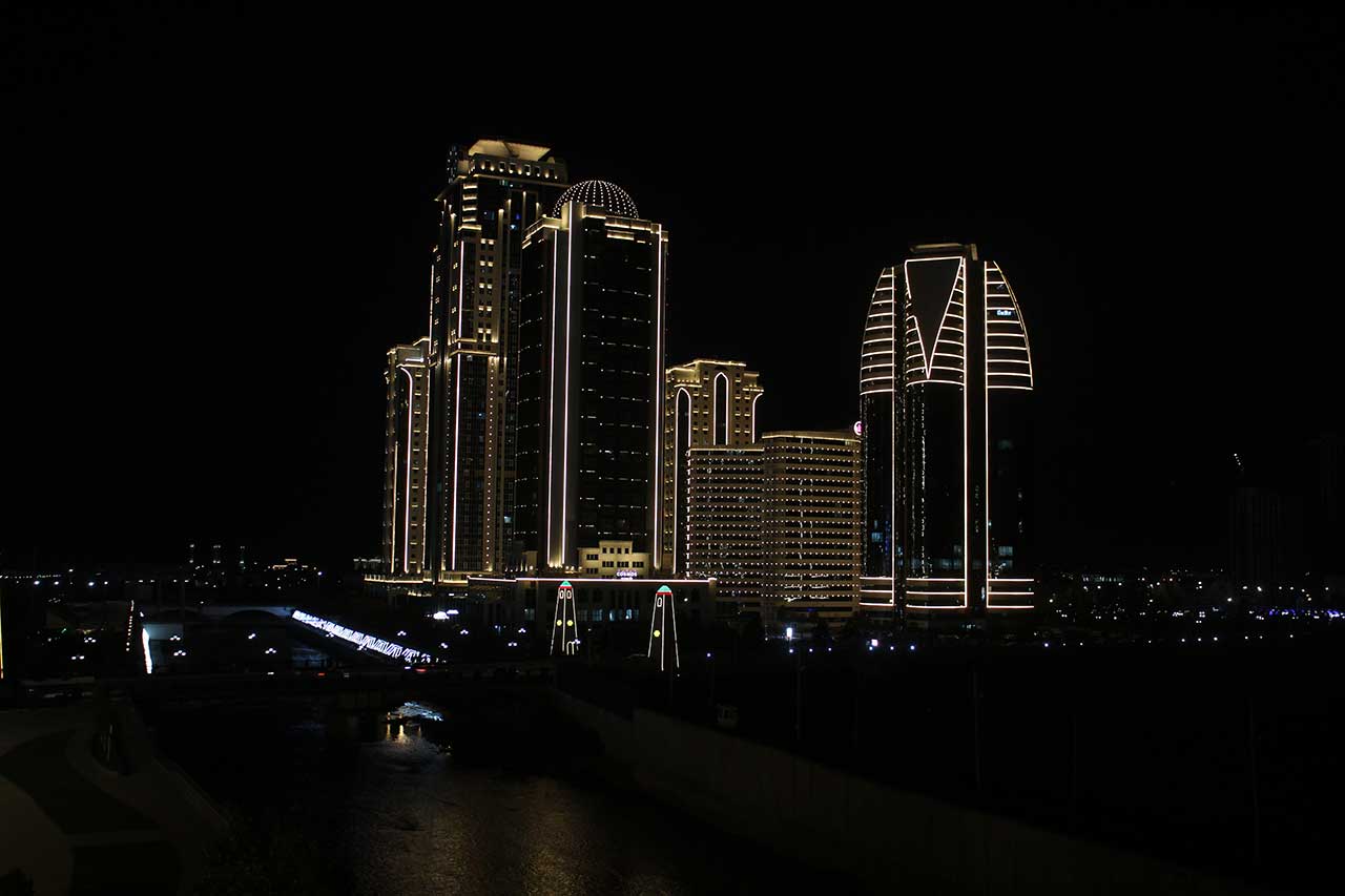 Во время двух чеченских кампаний Грозный был уничтожен. Теперь город обрастает вокруг проспекта Владимира Владимировича Путина, плавно перетекающего в проспект Ахмат-Хаджи Абдулхамидовича Кадырова.