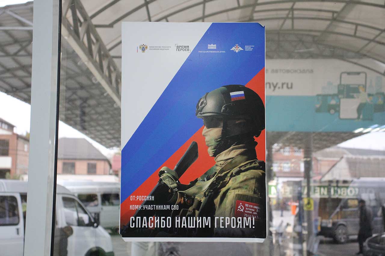Улицы покрыты портретами Ахмата Кадырова и Владимира Путина.