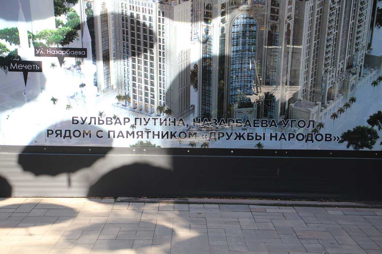Во время двух чеченских кампаний Грозный был уничтожен. Теперь город обрастает вокруг проспекта Владимира Владимировича Путина, плавно перетекающего в проспект Ахмат-Хаджи Абдулхамидовича Кадырова.