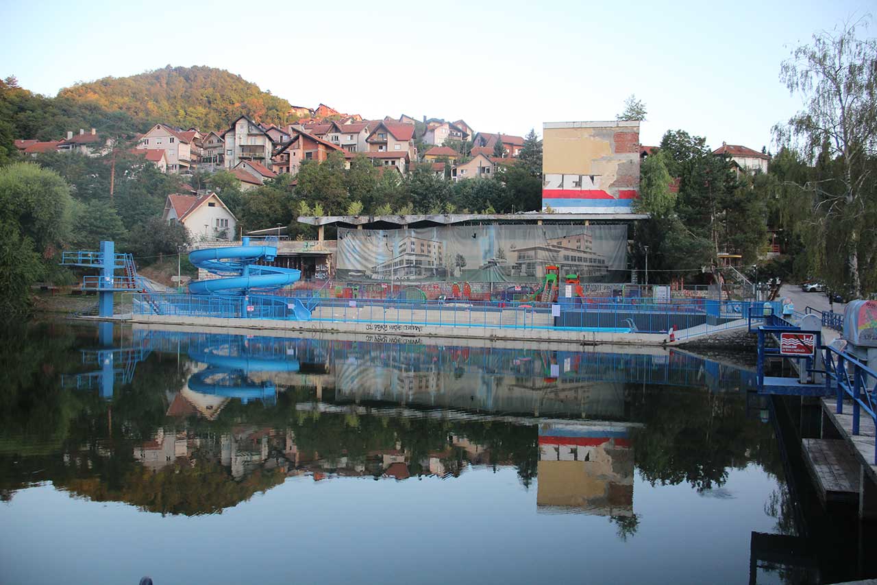 Первое, чем встречает страна — милый малый город, у которого прямо на реке аквапарк.