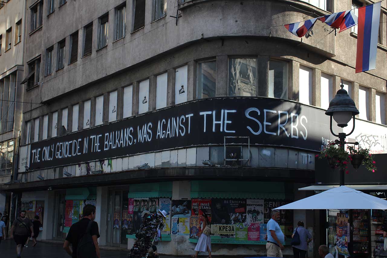 На местном Арбате надпись: «Единственный геноцид на Балканах был против сербов».