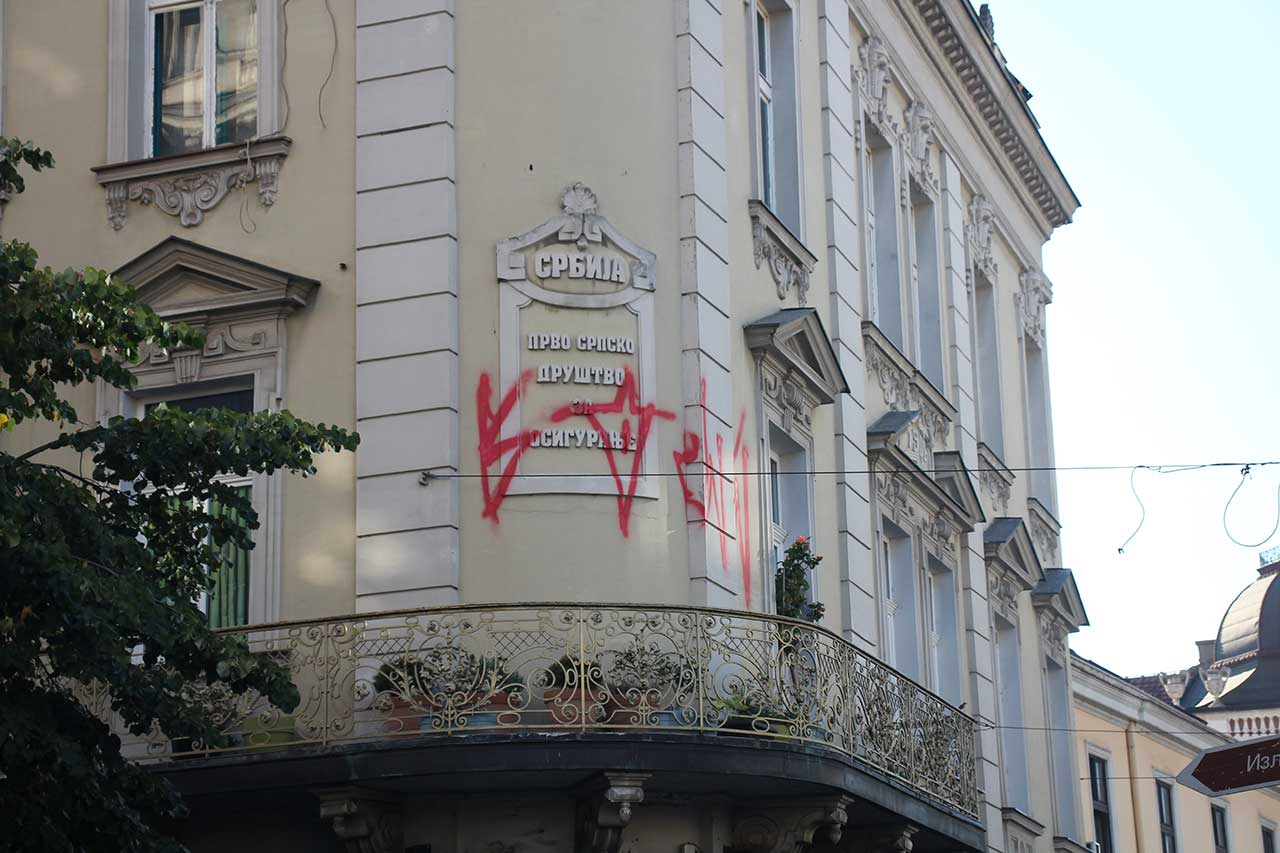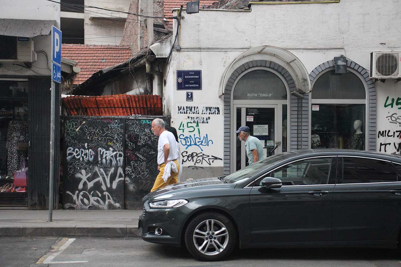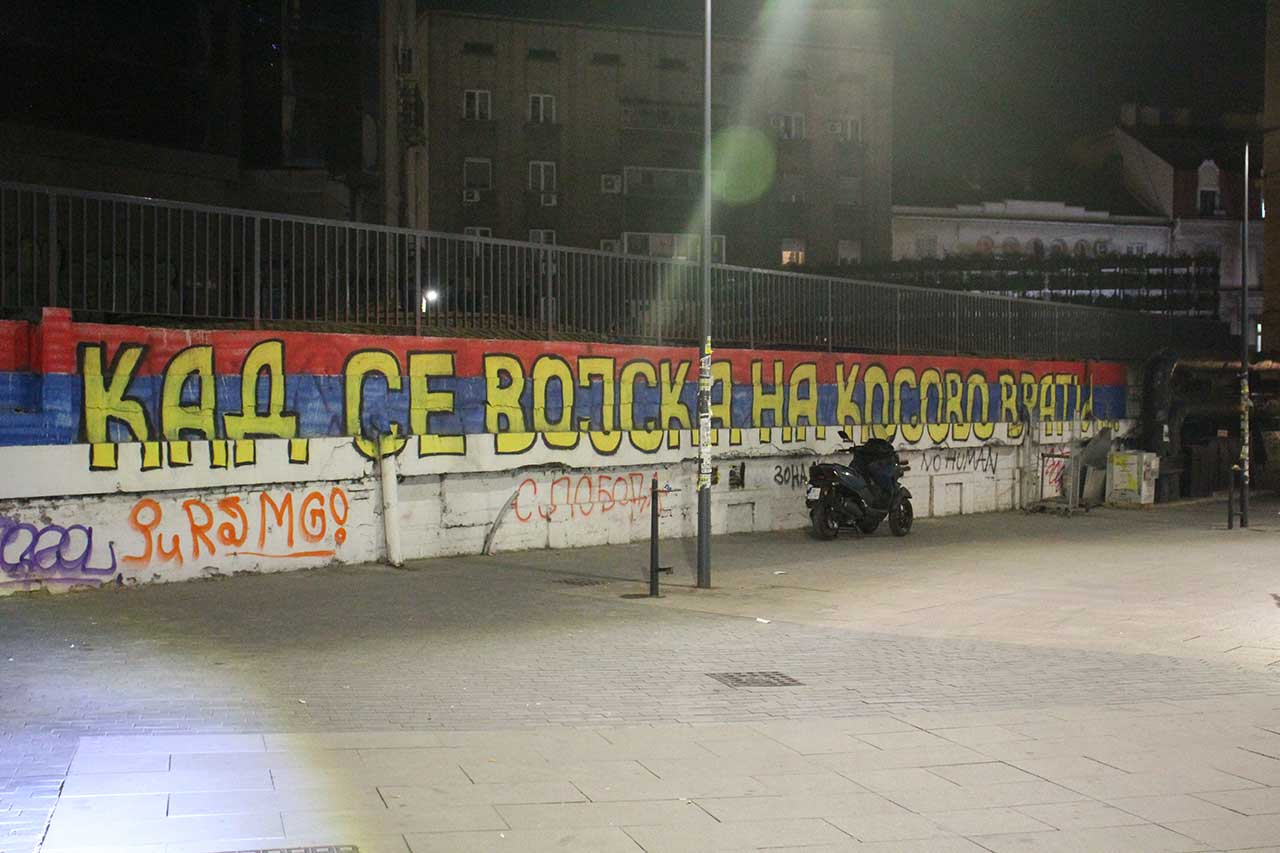 На местном Арбате надпись: «Единственный геноцид на Балканах был против сербов».