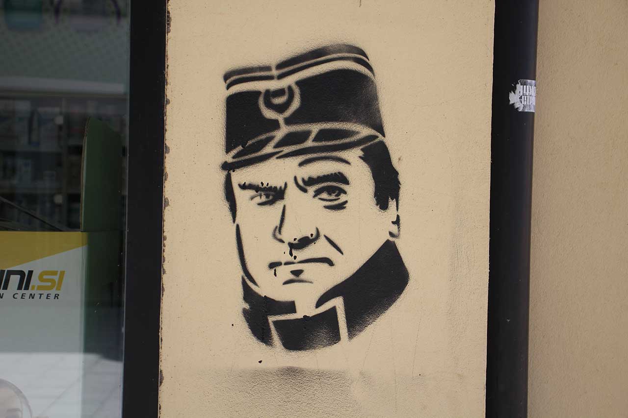 Зачастую попадаются граффити с Ратко Младичем. Это который устроил геноцид в Сребренице.