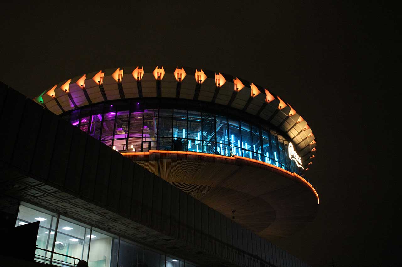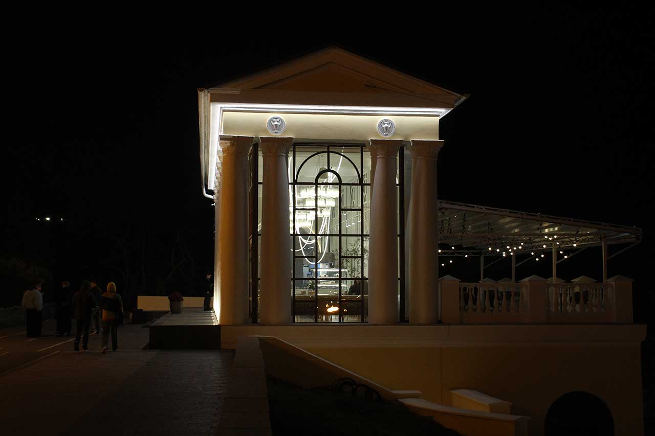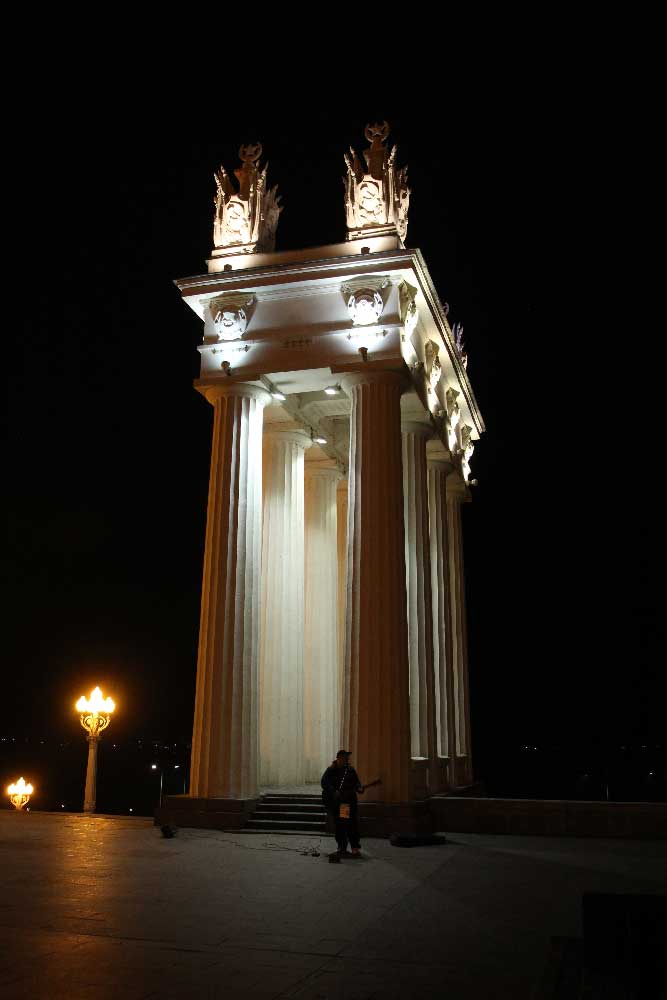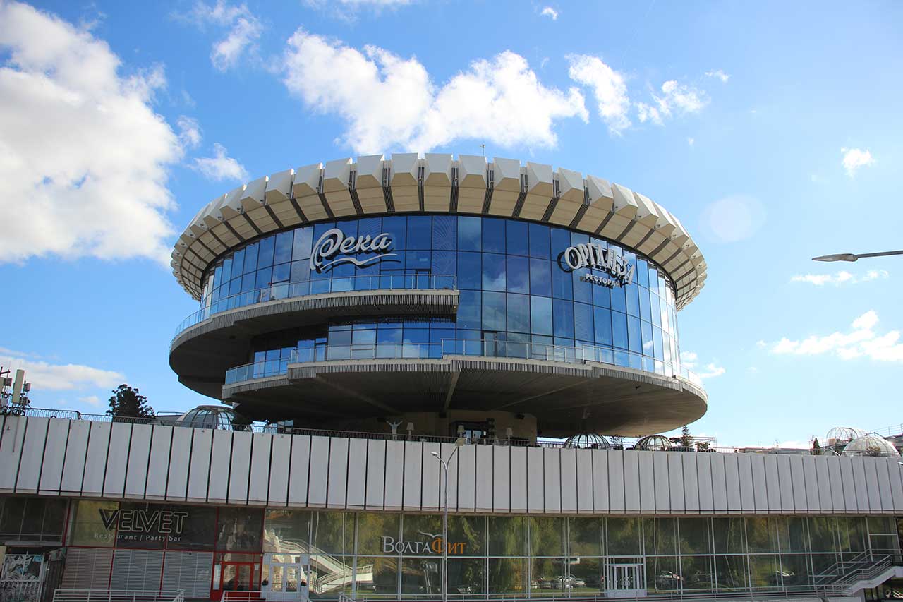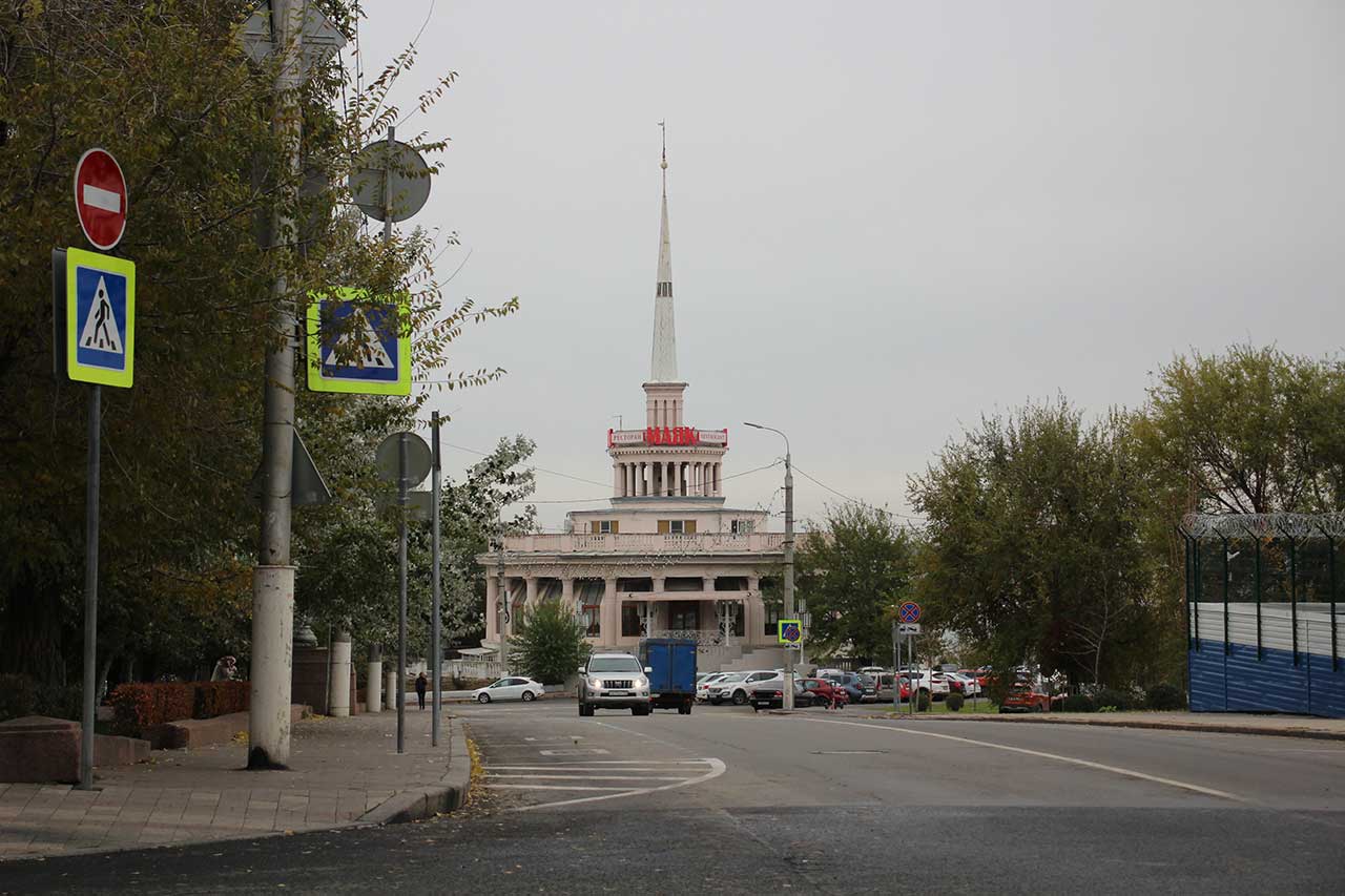 На набережной показывают ордена и круглый ресторан.