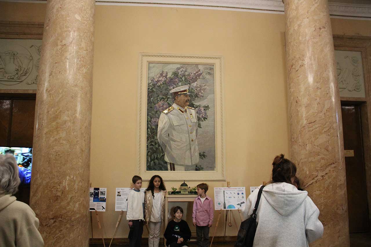 А внутри фоткаются с портретом Сталина.