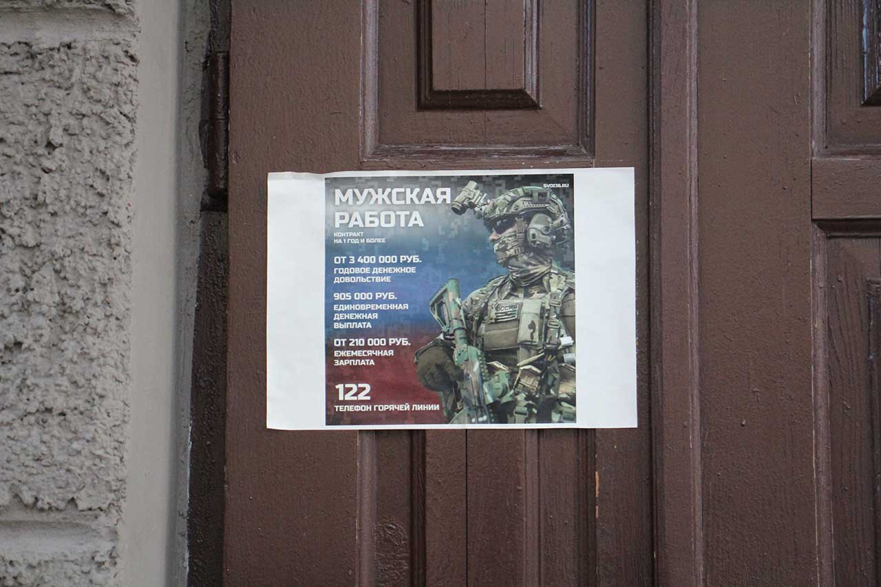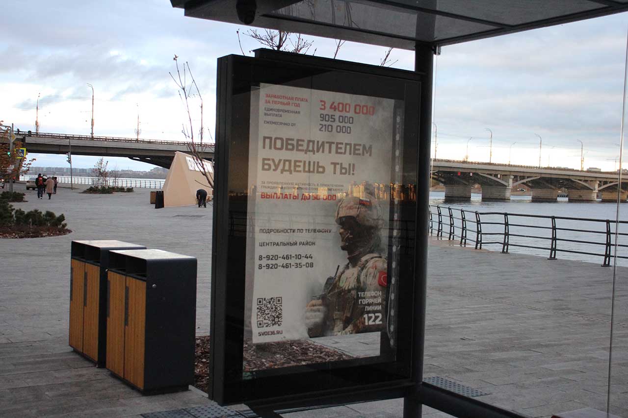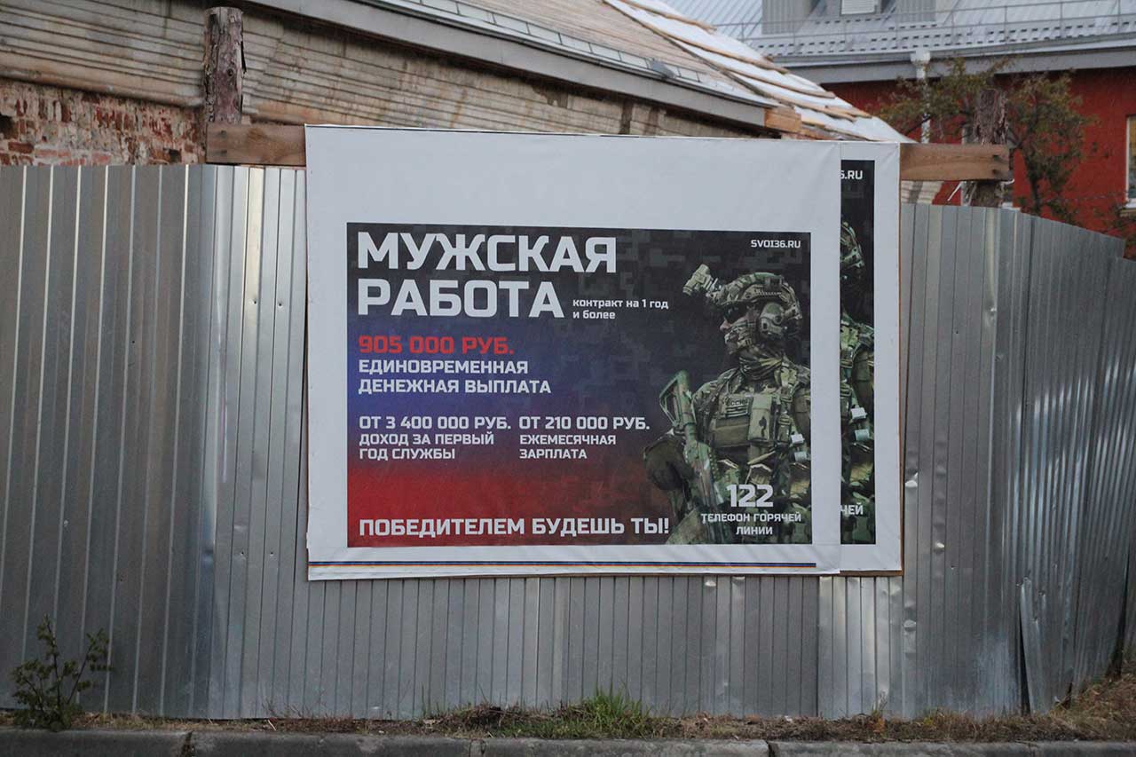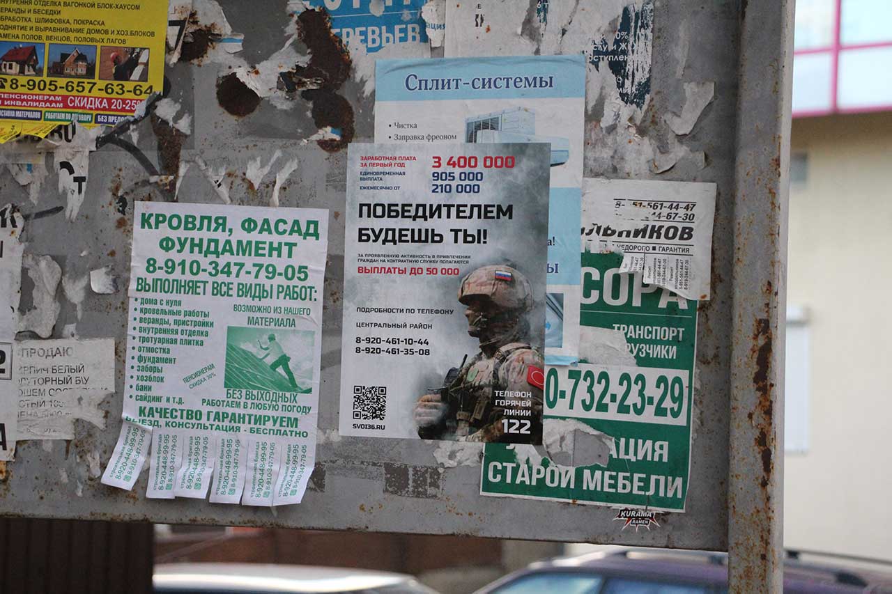 В городе огромное количество рекламы службы по контракту. Возможно, из-за непосредственной близости к фронту.